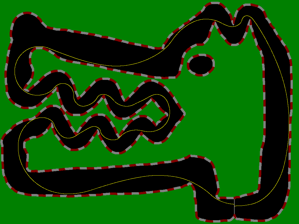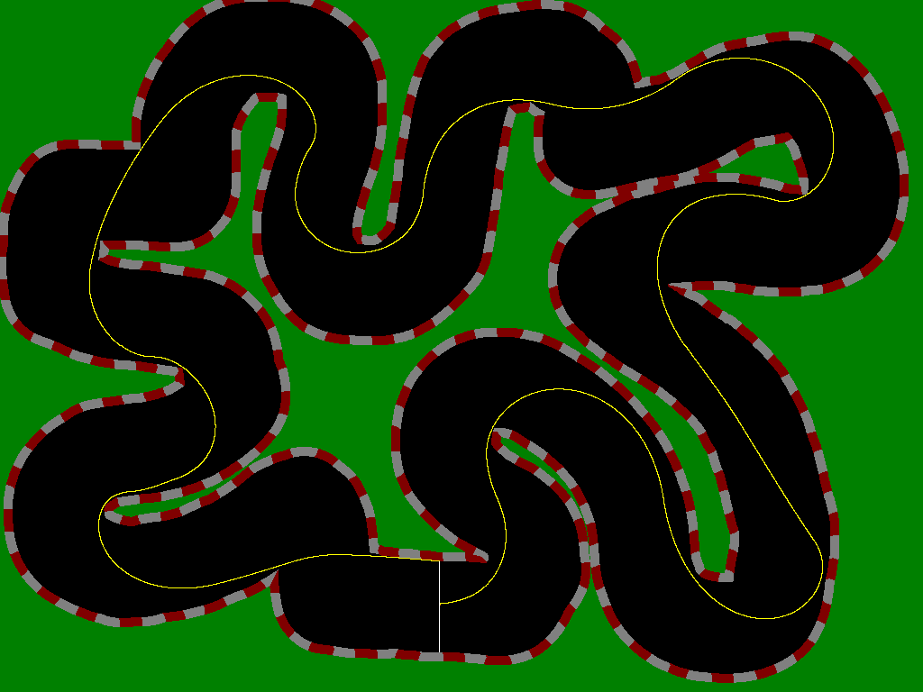 This sort of heuristic random solution can in fact make use of an infinite amount of computation, and still won't give an optimal solution. I only have a single Athlon 600. Tuning the algorithm took quite some time, and an important part of tuning was to get it solving as many tracks as possible by itself (without adjustment of the constants). I have some ideas to improve speed (e.g. caching the result of the unchanged part of the path), but didn't implement these ideas. As always, there have to be some compromises between meeting the deadline and the quality of the implementation. I later got a significantly better result for track 9, by growing the population to 128.